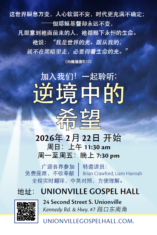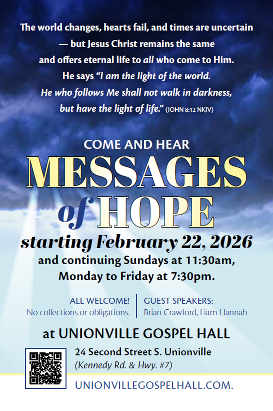 We invite you to join our service in person. For those who cannot attend, a live broadcast is available on our YouTube channel: https://www.youtube.com/@unionvillegospelhall1268/streams